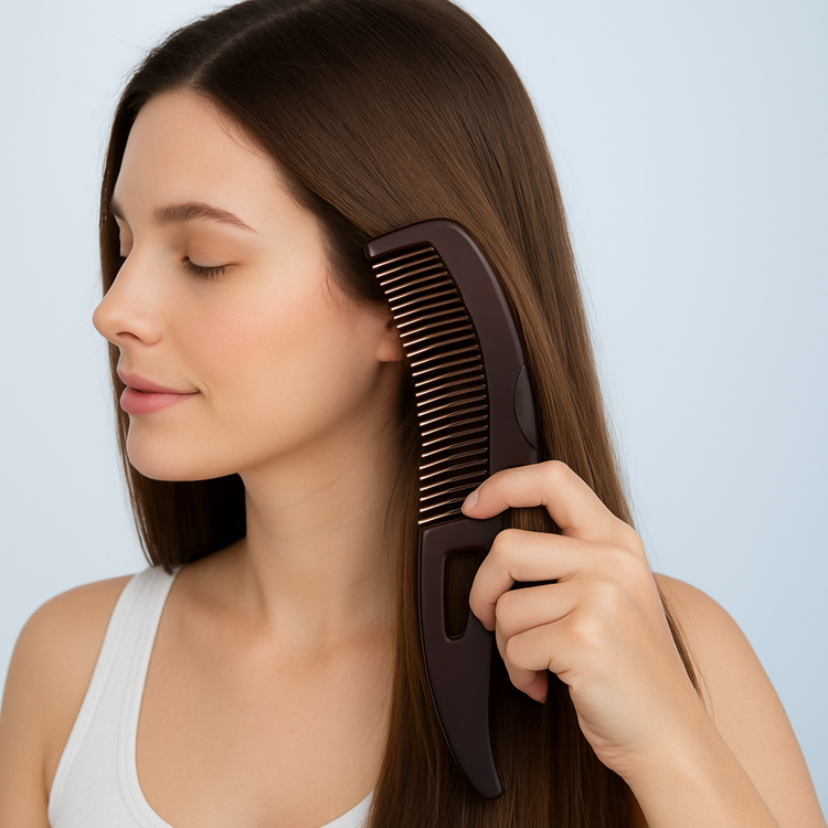 Our ElaysaCare™ Comb removes dirt and buildup with one click. Its rounded U-shaped teeth massage the scalp and detox follicles for a cleaner, healthier scalp—perfect for daily use.